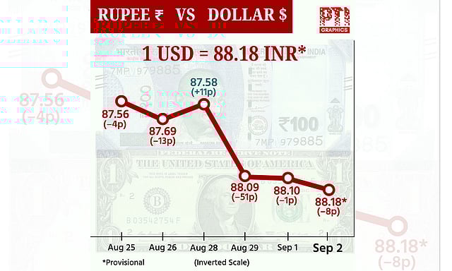 The rupee breached a record low level of 88 against the US dollar on Friday last week and hit an all-time closing low of 88.18 to a dollar on Monday. The rupee traded near record levels at 88.15 to a dollar on Tuesday as well. A weaker rupee increases the price realisation of exported products but makes imported products costlier.