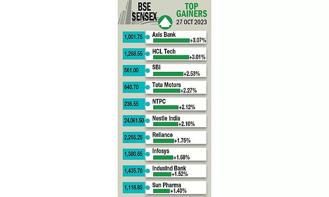 Axis Bank was the biggest gainer in the Sensex pack, rising 3.07 per cent, followed by HCL Tech, SBI, NTPC, Tata Motors, Nestle India, and Infosys.