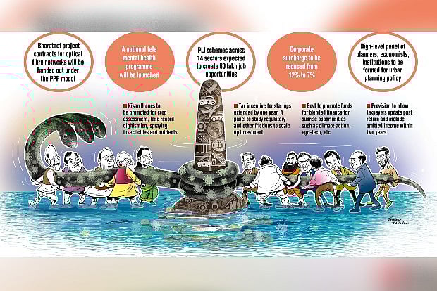 The focus on infrastructure and capital expenditure, coupled with support for the states to do the same, comes on top of a number of welfare schemes targeted at the poor. Several of these are ongoing, and have been the hallmark of the current government. These include the ‘Nal Se Jal’ scheme (piped drinking water for all), the programme for low-cost housing, gas connections for the poor and several others. There is a substantial allocation for Minimum Support Price (MSP) payments as well as an idea to develop green agriculture. Thus, there is a balance between development objectives and welfare programmes, in an attempt to reach out to both ends of the spectrum. Of course, in this, the guy in the middle, the salaried middle class, gets nothing!