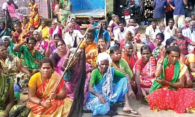After the news spread, hundreds of villagers gathered in Eganapuram holding black flags. Tension prevailed as one of the women attempted to set herself on fire after pouring kerosene over her body.
