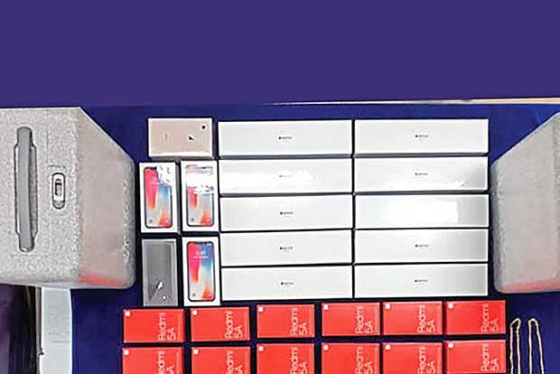 According to Chennai Customs, 9 iPhone X, 5 iPhone 8, 32 Apple Watches, 40 Redmi 5A, 1 Redmi note5, six phantom 4 PRO drones, 48 drone batteries and 400-gram gold were seized from four passengers. Sources added that the women caught with contraband were residents of Chennai while the two men hailed from Sivaganga.
