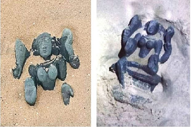 Local residents and families from fishing hamlets had gathered at the spot to have a look at the idols. Police, after talking to some experts, said the idols are the ones normally seen in front of Lord Shiva temples. As there was no Shiva temple in the area, police believe the idols may be from some far-away temple.