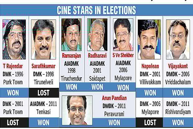 Chances of even a fraction of these stars turning candidates in major parties are bleak considering that the leaders seem to be keen on merely exploiting their cosmetic value. Echoing this view, Dravidian scholar and editor V M S Suba Guna Rajan says; “Only those actors who have faded in to obscurity are entering politics. Popular faces will not risk losing business.