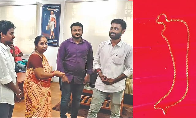 Later, they found the chain belonged to Kumaravel and Selvi. The couple had kept the chain on the idol for worshipping but they had forgotten to take it back. The youngsters returned the gold chain in front of the Kancheepuram Superintendent of Police.