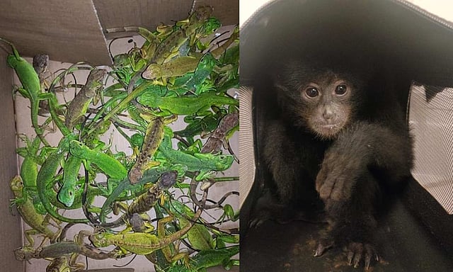Initial examinations led to the retrieval of wildlife species — four Siamang Gibbon and 52 numbers of Green Iguana.