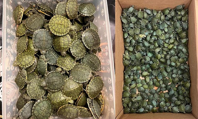 The 5,400 red-eared star turtles, which are typically found in cold regions such as Thailand, Malaysia, and parts of Europe, are kept as ornamental pets in large private estates and decorative tanks.