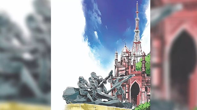 The approximate location of the Triplicane May Day has the Triumph of Labour Statue by Debi Prasad Roy Chowdhury, which was installed on January 25, 1959.