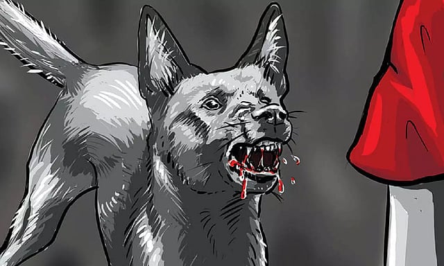 The local residents and shopkeepers on GA Road who witnessed the incident said the dog was abandoned by a pet owner a few hours ago. It suddenly became ferocious, sparing no one in the vicinity, including five students returning from school.
