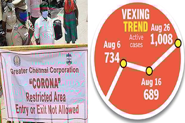 According to Chennai Corporation data, Thiru Vi Ka Nagar is among the five zones where there are more than 1,000 cases. As on August 26, the zone had 1,008 active cases, which is 10 per cent of the 8,699 COVID-19 positive cases reported from the zone. Meanwhile, the zone had only 689 active cases as on August 16, when the zone had a total of 8,177 reported positive cases. The active case number was only 8 per cent then.