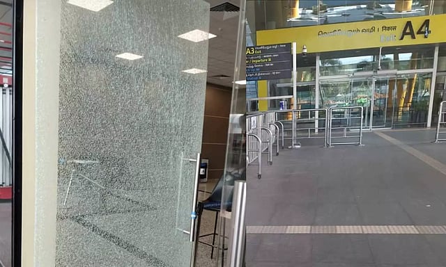 CHENNAI: A seven-foot glass door at the domestic terminal of Chennai Airport suddenly shattered, causing a loud noise and panic among passengers and airport staff.