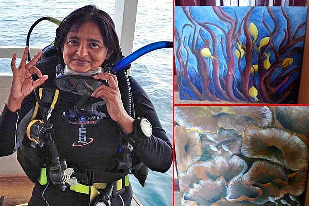 After exhibiting her paintings in the Maldives, Uma held an art exhibition in New Delhi recently. Through her paintings, Uma is trying to convey the importance of saving coral reefs. “They are way too beautiful and it’s our duty to save them. I want to set up coral nurseries along the Indian coast. I am planning to dive at the coral nursery in Gujarat and paint a picture of it.
