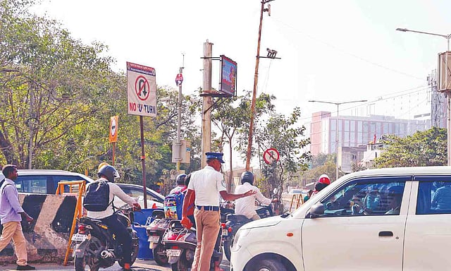 The traffic conditions at SRP Tools Junction are more chaotic irrespective of the ban on taking U-turns and right turns on the junction for vehicles coming from Tidel Park junction. During the daytime, it is a Herculean task for the traffic cops, deployed at the junction, to stop vehicles from turning at the junction. Though there is a U-turn nearly 500 meters ahead on OMR, bikes, auto rickshaws, and even cars take U-turns blocking the flow of the vehicles, thereby disrupting the traffic flow on the road. It is said that it takes up to 20 minutes for commuters to cross the junction during peak hours till midnight.