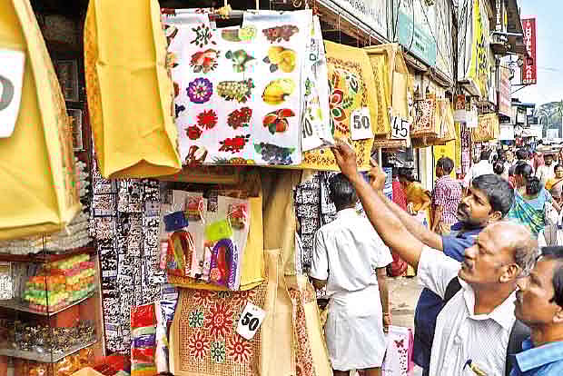 “We provide bags only when customers purchase items worth Rs. 100 or more. Otherwise, we give paper covers,” said a petty shop owner at Parrys Corner.