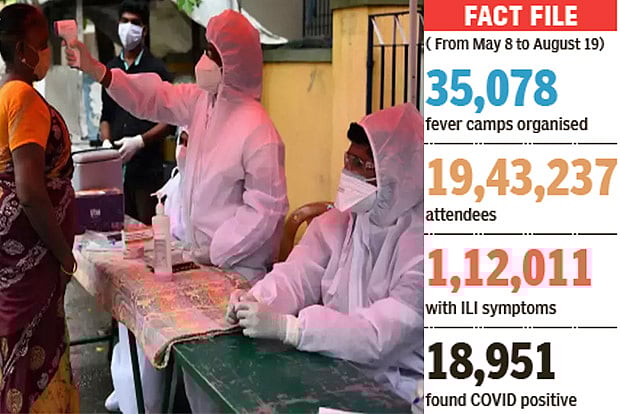 So far, the Corporation has organised 35,078 fever camps across the city from May 8 to August 19. As many as 19.43 lakh people have attended these camps – or about 20 per cent of the city’s population – of whom 1.12 lakh had ILI symptoms. That is, about 6 per cent of the people who were screened had ILI.