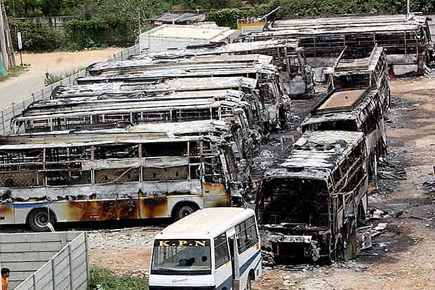 Vehicles bearing Tamil Nadu registration were also torched and damaged even as commercial establishments owned by Tamils were targeted in Karnataka.
