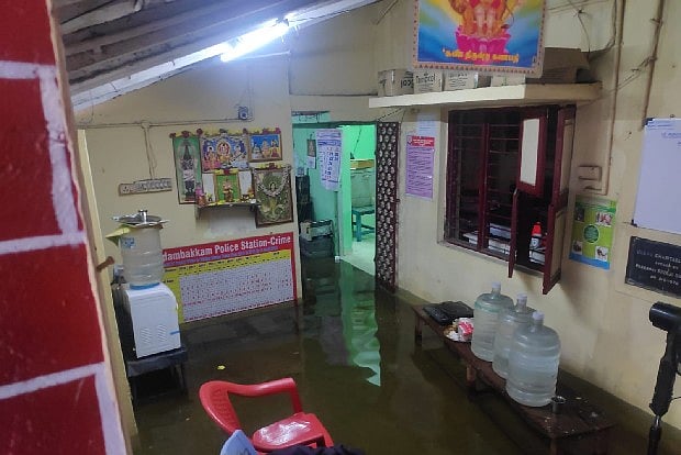 Following the continuous rain, many parts of Chennai and suburbs like Pallavaram, Tambaram, Anagaputhur, Sembakkam, Pammal, Kovilambakkam, Madambakkam, Medavakkam and Adambakkam are inundated. The Adambakkam police station, which is functioning in New Colony, was flooded by water on Monday morning. Initially, the cops took the important documents and other equipment to a safer place but later in the afternoon the police station had to be shifted temporarily. Police said the station was shifted to the first floor of a house in New Colony 2nd Street. However, a few constables would be stationed at the old police station since the public might not be aware of the shifting.