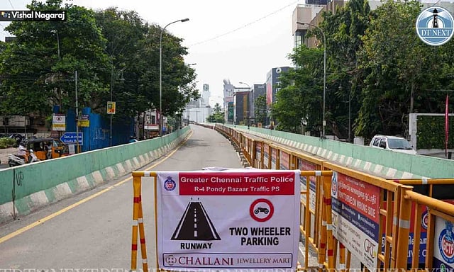 Due to the ongoing flyover construction between South Usman Road and CIT Nagar first main road, the Usman Road flyover has been closed for traffic.
