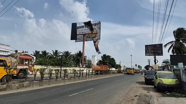 Motorists, particularly two-wheeler riders, said they are travelling in constant fear, unsure when a banner frame might snap and fall onto the road. Several commuters expressed shock that, despite the visible danger, no immediate preventive action has been taken by the Highways department or the traffic police.