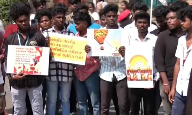 According to a Thanthi TV report, the students gathered in front of the college gate, protesting against the imposition of Hindi.