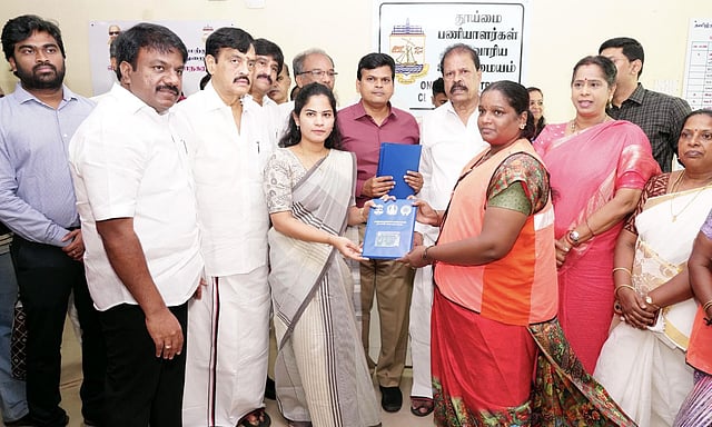 The centres will ensure that workers can enjoy the benefits of various welfare schemes and other services provided by the Tamil Nadu Sanitary Workers Welfare Board. Subsequently, the mayor distributed identity cards and issued booklets on welfare schemes to the registered members of the Board.