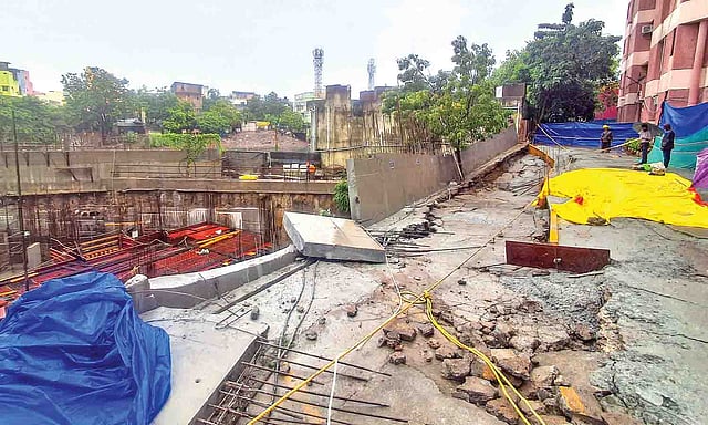Residents complain that the ongoing construction of a real estate firm adjacent to the apartment is one of the prior reasons for the concrete wall to sink. Residents of the respective block will be temporarily shifted until the restoration work is completed.