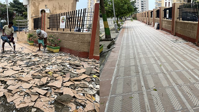As the curbs and tiles were damaged along with the overgrown roots of the trees on the footpath, the replacement works are underway. “The effect of the West Asia conflict and the LPG gas crisis is delaying the arrival of the new tiles. All the works are expected to be completed in the next two weeks,” said an official of the Corporation.