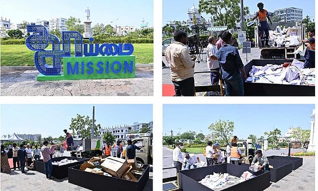 Followed by the inauguration of planting one lakh native tree saplings across the city, a special vehicle carrying traditional art performers including Parai artists and several others, was flagged off as part of the anti-plastic campaign across the city.