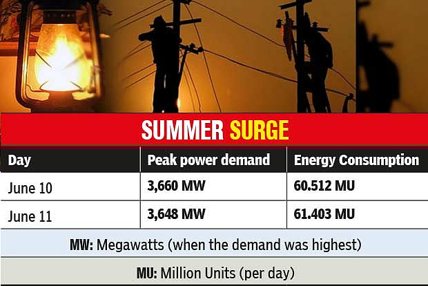 The city’s power demand touched an all-time high of 3,660 MW on Monday, breaking its previous record of 3,537 MW in April last year. On Tuesday, the power demand touched 3,648 MW. The surge in the power demand coincided with the rise in mercury. The city’s temperature has been hovering over 41 to 42 degrees Celsius for the past few days.