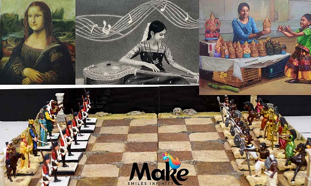Unlike last year, this year’s one-day event will include an art installation. Keerthana’s chess installation stands out with a unique idea. Interestingly, it is not a clash between white and black coins but a battle between the Cholas and the British.