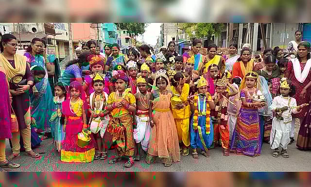 CHENNAI: On the occasion of the Krishna Jayanti festival, children were seen dressed up as Lord Krishna and Radha and went on a procession on the streets in Vandavasi, according to a Daily Thanthi report.