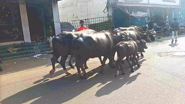 Several thousand commuters use the Pallavaram railway station road to board the suburban trains to various destinations. However, commuters and shopkeepers face difficulties as the herd of buffaloes is spotted on the road frequently.