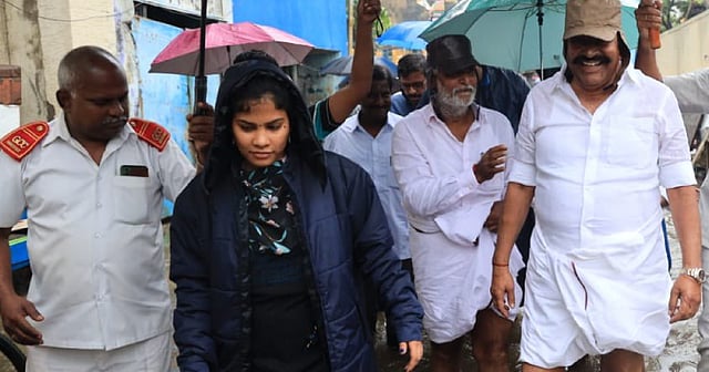 Sekar Babu along with officials inspected areas in north Chennai which received very heavy rainfall and directed the officials to pump out the stormwater from low lying areas.