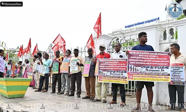 CHENNAI: While the Greater Chennai Corporation (GCC) floated tender to privatise solid waste management in four zones in the city, the Chennai Corporation Red Flag Union along with cleanliness workers staged human chain demonstration at Ripon Building on Tuesday to withdraw the decision to protect the livelihood of the workers.