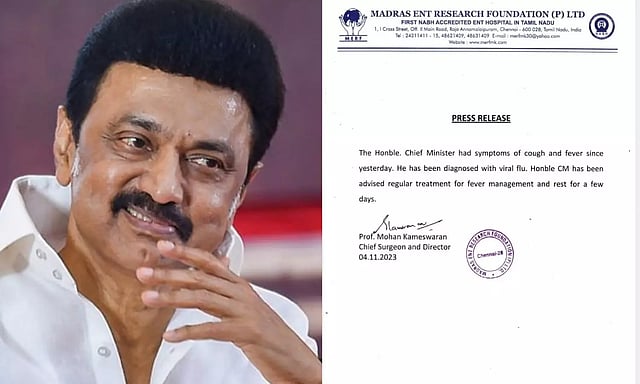 A statement released by Dr Mohan Kameswaran, chief surgeon and director of Madras ENT Research Foundation (P) Ltd said, "The Chief Minister had symptoms of cough and fever since yesterday. He has been diagnosed with viral flu. CM has been advised of regular treatment for fever management and rest for a few days."