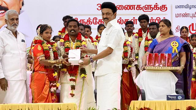 The mass marriage was held in line with an announcement made in the 2022-23 Hindu Religious and Charitable Endowments (HR&CE) department grants in the state Assembly, an official release said. The HR&CE department manages temples in the state.