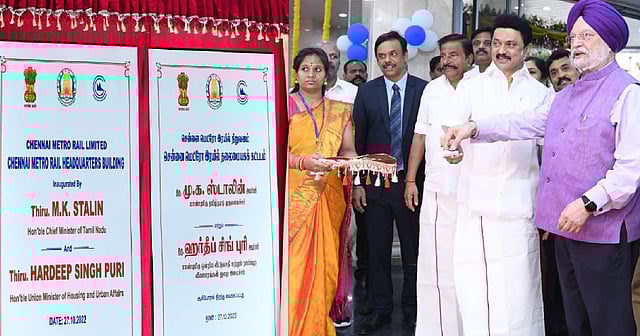 CHENNAI: The new headquarters of Chennai Metro Rail Limited (CMRL) constructed at the cost of Rs 320 crore in Nandanam on Anna Salai was jointly inaugurated by Chief minister M K Stalin and Union Minister of Housing and Urban Affairs Hardeep Singh Puri on Thursday.