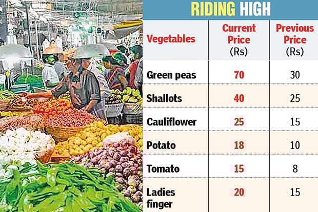 “Now, the prices have increased. Green peas that was being sold for Rs 25 – Rs 30 per kg is now sold at Rs 70. Similarly, the price of shallots is at Rs 40 against its old rate of Rs 20-25,” said M Yelumalai, a wholesale trader. He added that the price of potato and tomato that had crashed to Rs 5 and 8 have touched Rs 18 and 15 respectively.
