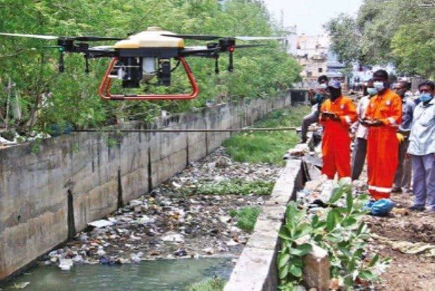 To carry out mosquito control works using drones, the civic body has tied up with the Avionics Department of Anna University. On June 26, a trial run was conducted to test the efficiency of the drones in spraying larvicide, during which the Corporation Commissioner Gagandeep Singh Bedi reviewed the operation. The statement added that drones would be used over Cooum and Adyar rivers, Buckingham Canal, Captain Cotton Canal, Otteri Nullah, Vyasarpadi, Virugambakkam and Mambalam canals among others. Overall, the civic body is planning to cover 140 km of waterways in 15 days.