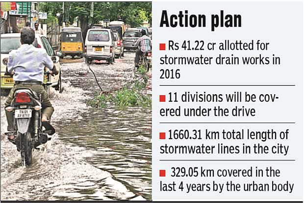 “Setting right the stormwater drains alone will not help. Officials should periodically inspect to maintain the system in right shape. Otherwise, the city will face a repeat of December,” opined S Mohanram, a city based social activist. When contacted, Saidai Duraisamy, Mayor, said that the urban body had already allocated adequate funds to augment the stormwater drains in the city. “We will inspect all the places and clear blockages, wherever necessary, to ensure free flow of rainwater and prevent inundation of roads and low lying areas,” the Mayor assured.