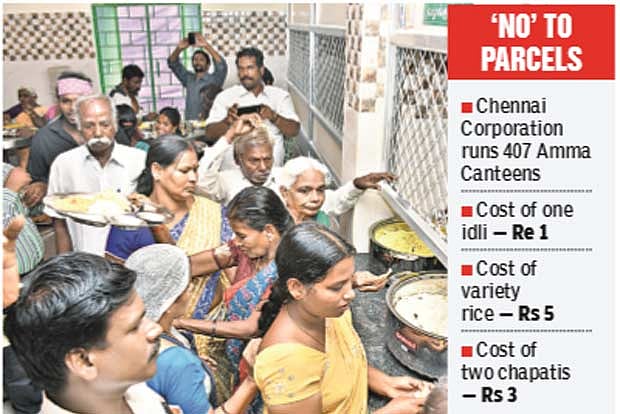 A circular from the civic body dated April 24 has warned the employees of Amma Canteens of severe action if they provide parcel food. Presently, the Chennai Corporation is maintaining 407 Amma Canteens across the city, including 7 canteens in major government hospitals. At many canteens, the employees have already started implementing the circular.