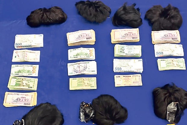 At least five passengers from Dubai were found carrying gold paste concealed under wigs while four passengers bound for Sharjah were found hiding foreign currency the same way.