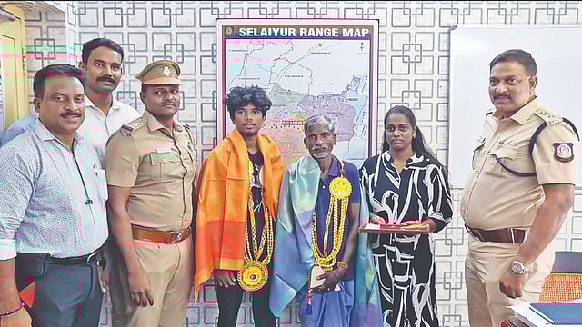 The Assistant Commissioner praised Murugan for his honesty in returning valuables and honoured him with a shawl and garland. Srinivasan was also appreciated for supporting his father in doing the right thing.