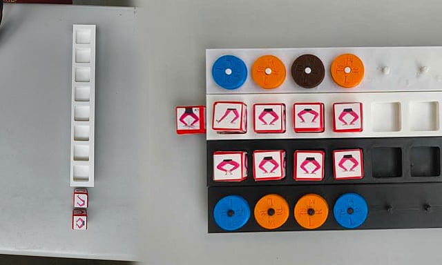 Atam incorporates physical components such as dice, dials, and holders, which together create a modular system to teach body movements intuitively and playfully. “Each dice face depicts a posture - standing, half-sitting, or full-sitting - while the dials indicate foot variations, transitions (like stamping, sliding, turning), and the angles the torso should turn to.