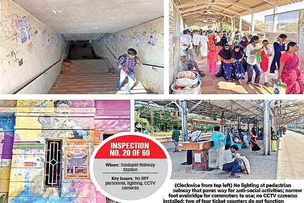 It is one of the oldest railway stations in the southern part of the Chennai, and among the most important one as well that is used by thousands every day. But from poorly lit platforms to lack of CCTVs, narrow foot overbridge and dysfunctional ticket counters, there are problems aplenty for commuters at Saidapet railway station.