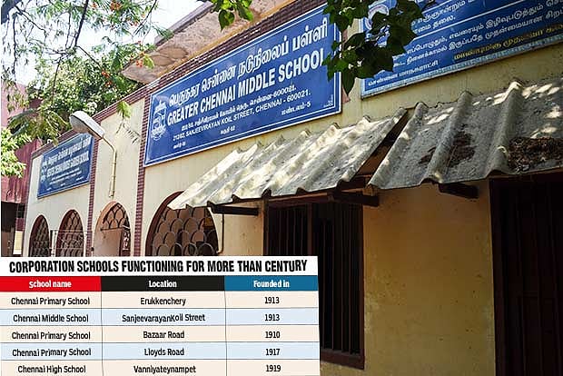 Among the five century-old schools run by the civic body, the oldest is Chennai Primary School on Bazaar Road in Saidapet. It also stands out from the four others as it is the only school to function in its original building built by the erstwhile colonial rulers.
