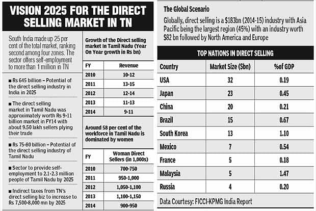 The direct selling industry in India is currently reckoned at INR75 billion, one of the fastest growing non-store retail formats, recording double digit growth of more than 16 per cent over the past four years. At a CAGR of 14-17 per cent, Tamil Nadu has been one of the fastest growing direct selling states in India between FY10 and FY14.