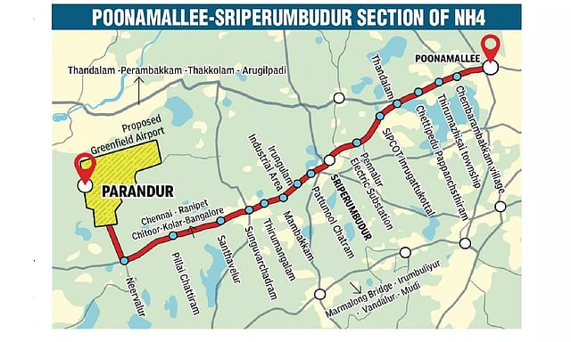 Chennai Metro Rail Ltd (CMRL) has proposed to construct an elevated metro corridor from Poonamallee to Parandur in the Kancheepuram district along the NH4, on which the NHAI has planned to construct an elevated road from Maduravoyal to Sriperumbudur via Poonamallee.