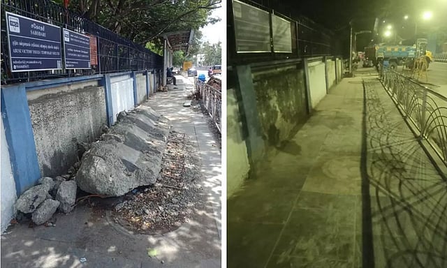 "The concrete structure was removed as soon as it was brought to our attention," an official told DT Next sharing the before and after photo images. DT Next reported the debris encroached on the pavement by the construction workers posing danger to pedestrians.