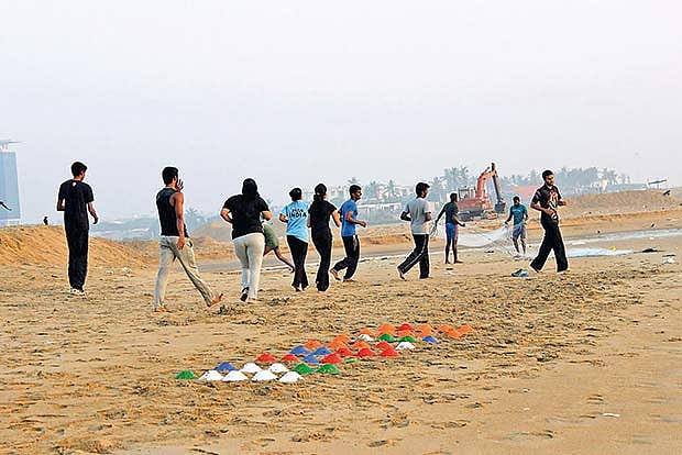 In fact, their name is derived from the Oval Grounds where they practised initially. “We started out at the Oval Grounds, where a group of fitness enthusiasts met to exercise,” says Yohannan John, founder of the group. Ajit Sigamani, of another group called Combat Kinetics, says, “We often go to a public place like the beach for boot camps. Working out in open spaces is helpful for group activities like team-building exercises.”