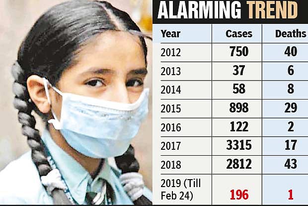 Though State Health Department officials claim that the disease is under control, the rise is significantly higher compared to last year when State had only 40 cases till February 2018, as per the data provided by the Integrated Disease Surveillance Programme of the National Centre for Disease Control.